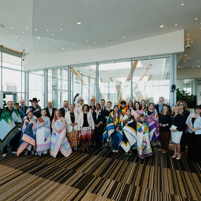All recipients are pictured with ASBA Indigenous Advisory Council Members Elder Theresa Strawberry and Elder Charlie Fox.